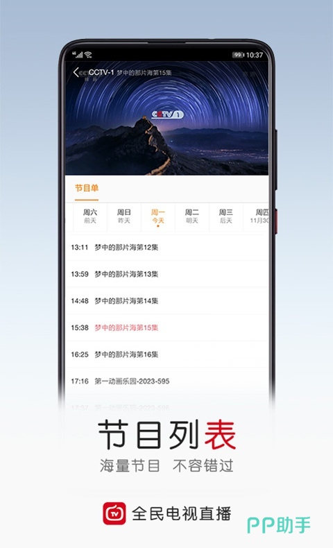 手机也能看高清流畅的电视直播了,喜欢看电影就关注CCTV6、喜欢看体育赛事就关注CCTV5、喜欢看法制类节目就关注CCTV12,满足大家不同的需求和爱好。