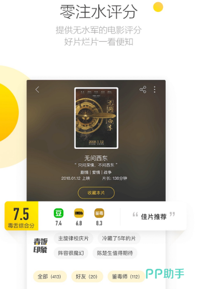 与传统的电影技术相比较起来,4k电影有着超高的分辨率以及独特的音效,这也意味着每位演员以及场景都能够以真实的状态展现为用户带来极致观影体验。这款电影app专为影视爱好者所推送,高清正版影视,无任何广告。上千部高分典藏及影视,包含国内外知名影片以及好莱坞影片,全球热映,新电影都可在线预约。
