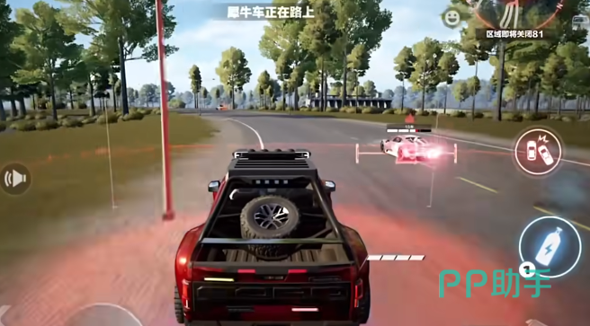 犀牛车,召唤犀牛车辅助追捕,在锁定之后迅速点击,用犀牛车撞对手效果特别给力,稍微一不注意就会被撞停,是追击队要掌握的核心技巧。