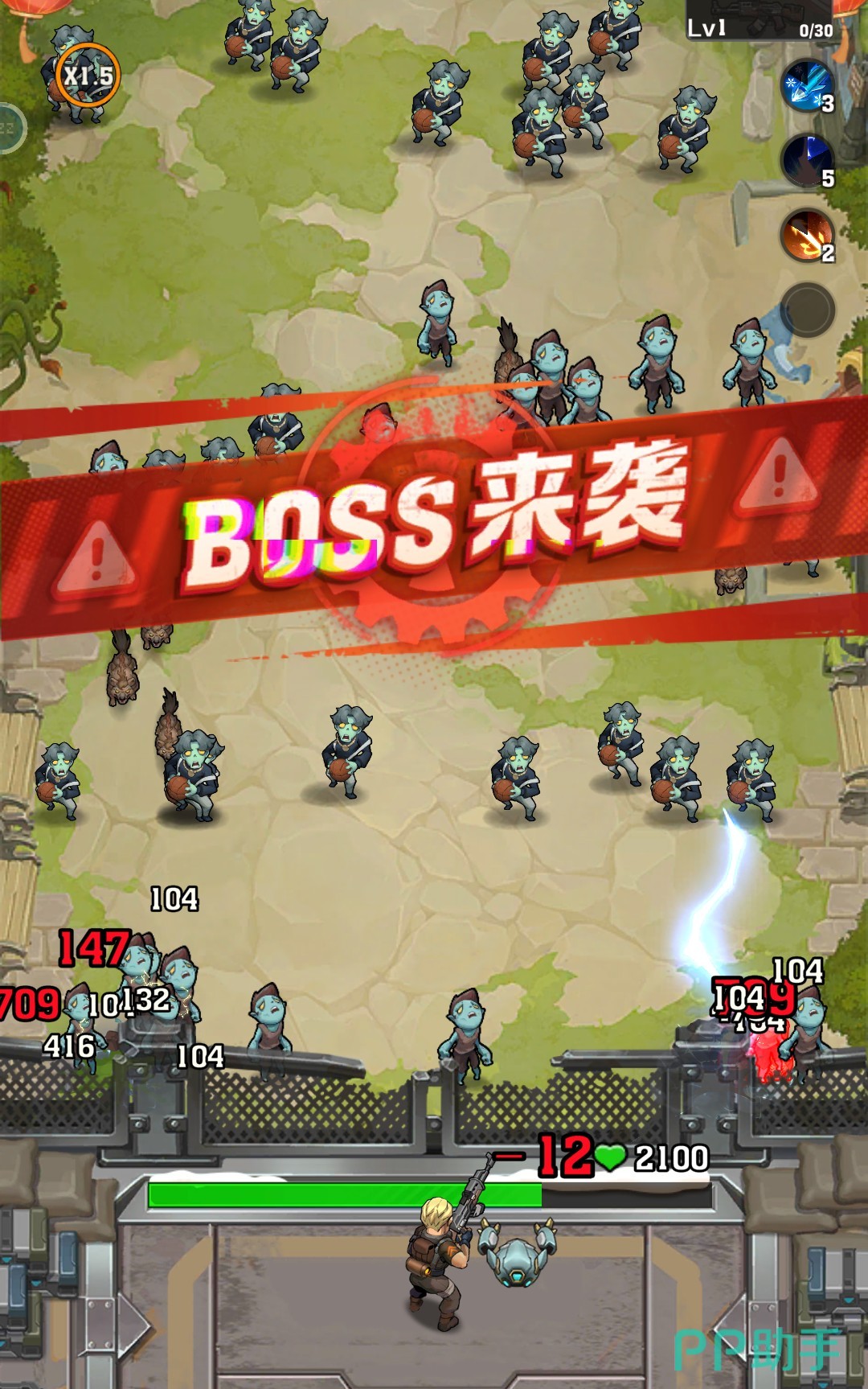从第四关开始,关卡内便会出现精英怪的身影,且精英怪在出现时会有“BOSS来袭”的警告闪烁,随后精英怪就会从上方加入战场。每关的精英怪都不一样,但相同的是它们头上都会直接显示血量数量,并且在体型和形象方面也与普通僵尸有着较大的区别。