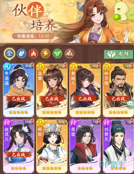 当然了,这款游戏作为同名ip仙剑衍生出来的回合制战斗游戏,还是十分推荐大家去体验的,在游戏对战的时候,大家可以选择上场五个不同的角色来组成一个阵容的搭配,目前游戏中比较厉害的单体角色是阿奴,大家获得后可以进行重点培养!