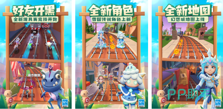 《地铁跑酷》是一款老牌游戏,已运营多年,游戏主要玩法就是操纵角色在地铁中酷跑,而酷跑中还会遇到障碍物以及金币收集即可。在最新版本中,游戏还更新了幻想城这个地图,新地图中,除了会掉落新道具以外,你还会结实新的朋友,比如雪国王子和精灵,而你则可以和他们来一场比拼。游戏考验玩家的眼手协调能力,给12岁小朋友玩,还可以锻炼他们的反应力。
