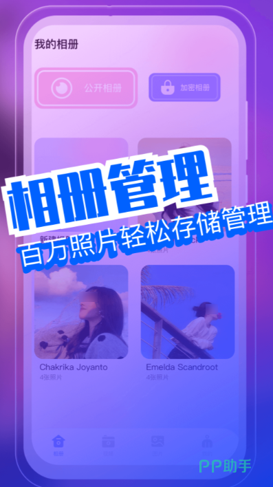 一款非常实用的手机相册管理工具,能够新建一个相册将其加密,把需要隐藏的照片添加进去之后就需要通过密码等验证才可以查看和编辑了。