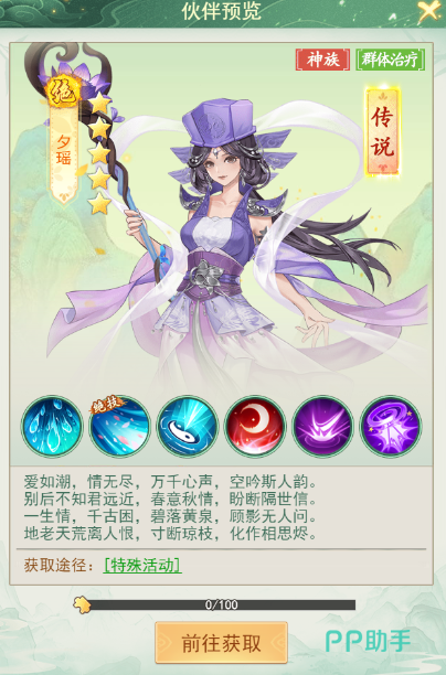 反观【夕瑶】,夕瑶的获取难度是游戏中比较特殊的存在,游戏中通常会举行一些特殊的活动,大家只能在【特殊活动】玩法中,来获得夕瑶,而游戏中是存在升星玩法的,夕瑶和李忆如都属于五星绝品伙伴,可以通过升星玩法,来强化到十星,星级越高,那么自身的属性收益肯定就会更高,所以大家要按照自己的需求来进行选择性的搭配和养成!