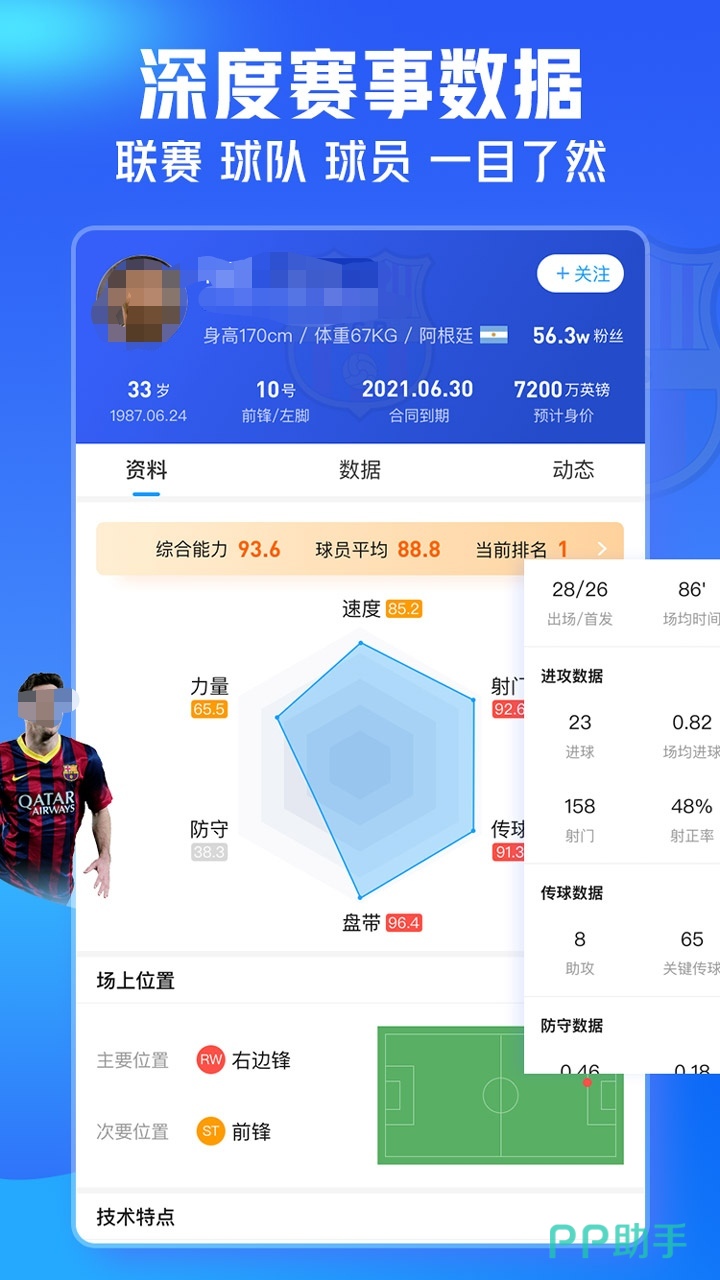 每天不停的更新体育资讯信息,精准的赛事数据,即使大家不打开APP也能了解到场上的一些重要信息和内容,看直播关注自己比较感兴趣的球员,搜索能快速找到目标球员信息。