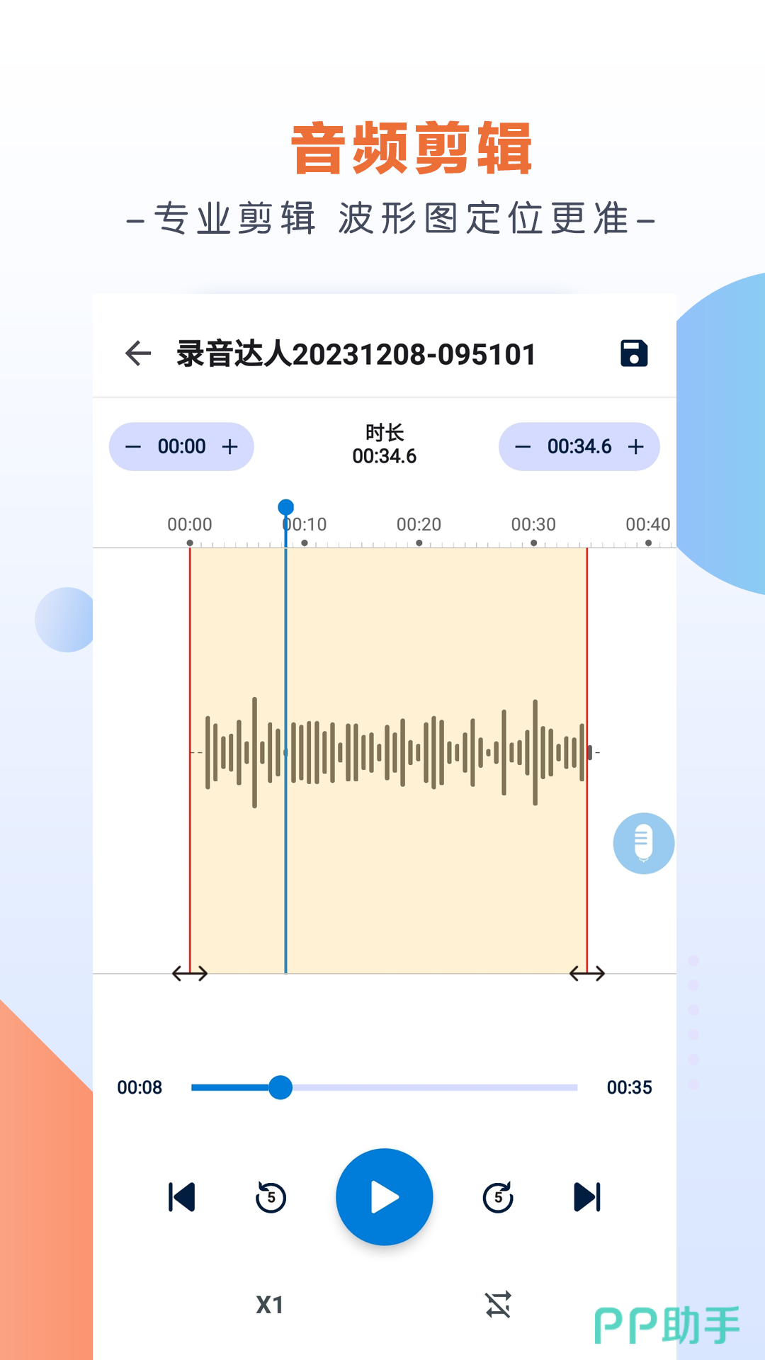 录音达人这个软件能够生成超多自己喜欢的音频内容,借助这个软件的帮助各用户能够通过音频的波形图来更好地确定不同的音频范围,并且借助这个软件的帮助大家还可以有效地调整音频的声音大小以及音频的节奏,通过这样的调整能够有效地突出叫卖音频的急促促销的感觉。
