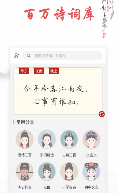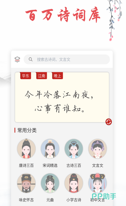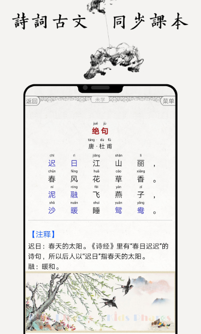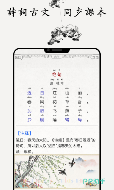 无论您是想学习唐诗宋词还是文言文歌赋,都可选择这款软件,还有注释,帮助你理解古诗词的精华,也能让你领略唐诗宋词的优美之处,涵盖了中小学阶段的教材,当然家长也可以通过这款软件来教家里的孩子背诗词。