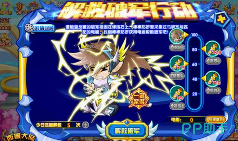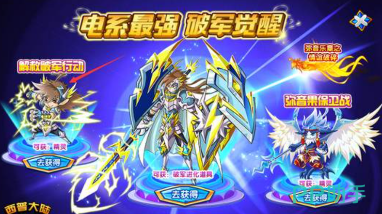 小编先来介绍一下获取方法,其实想要拿到破军还是比较简单的需要在“解救破军行动”中积累100点电能。这可以通过参与小游戏活动来实现。一旦收集到足够的电能,破军就会成为你的角色。这会涉及到两个小活动,分别为“破军行动”以及“觉醒破军”,其内容也就顾名思义了,一个是拿到精灵本体,一个是进化为雷霆破军王。