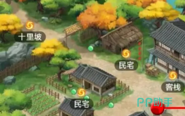 在尚书府右边的建筑,古董商的左边一处黄色宝箱。然后是在右下角的码头几艘船的岸边可以看到另一处宝箱。尚书府内部前门右边的草丛、右下角亭子的、以及尚书府房子的后面一共有3处宝箱。后花园左边大树和右边凉亭有2处普通宝箱,刘晋元房左边的草丛金色宝箱。