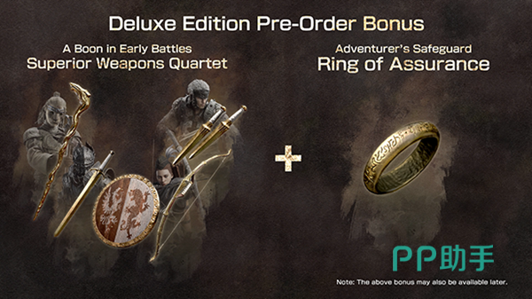 另外,在发售日之前预购豪华版的话还能够获得特制的四件套武器以及一个安心戒指。目前还没有公布预购奖励的领取,后续可能需要大家自行前往游戏中获取。