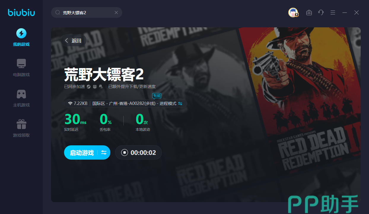 由于荒野大镖客2内的场景非常多,每帧画面都需好的网络方可渲染出来。biubiu就能为大家代劳,优化网络后即可迅速加载栩栩如生的场景,令人不仅陶醉其中。然后新人可领取24H的免费加速,如此一来即可先一步感受游戏魅力!除此之外,所有人均可通过【biubiu不卡顿】,就能获得三天免费加速,就能继续在西部小镇里挥洒你的热血青春!接着这片蛮荒世界的危险挺多,网络延迟高的话,一不注意就会被偷袭丧命。有了biubiu之后,便能让延迟变低,让你时刻警惕周围的风险,并逐一躲避!
