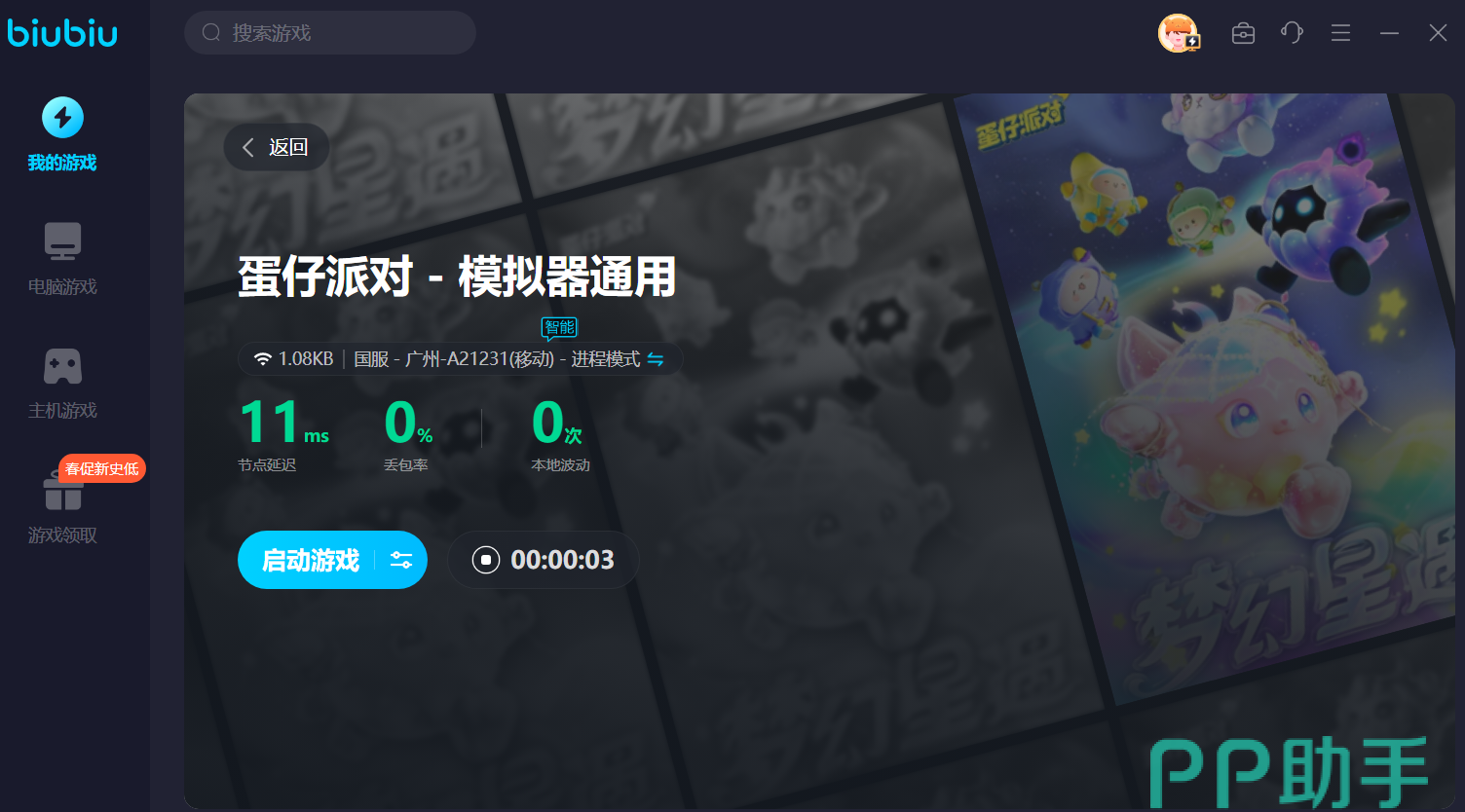 使用biubiu加速器加速蛋仔派对也很简单,只需在首页搜索“蛋仔派对”,即可将游戏加入个人库中,点击一键打开就能智能加速,无需额外去操作。biubiu加速器有多年游戏领域的加速经验,支持非常多的游戏加速,包括pc游戏,手游,主机端游戏等,开启加速后稍等数秒即可一键打开游戏,软件会自动退至后台,不会占用过多的宝贵电脑内存。