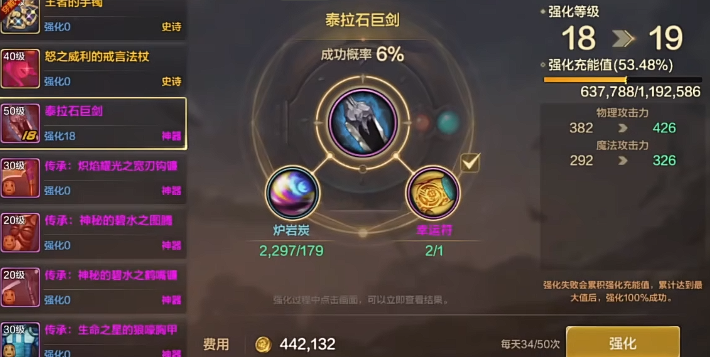 之后是武器的强化,可能有人要问了强化和氪金有什么关系,明明强化用的是金币,并不是充值币,这关系就在金币上,因为游戏中强化所需的金币是非常多的,而且还会有失败的概率,因此金币是会不够用的,不够用的话想继续强化那就需要去买金币,而买金币是需要充值的。另外强化时还有保护卷可以选择的,这些都是可以通过氪金来直接购买的。