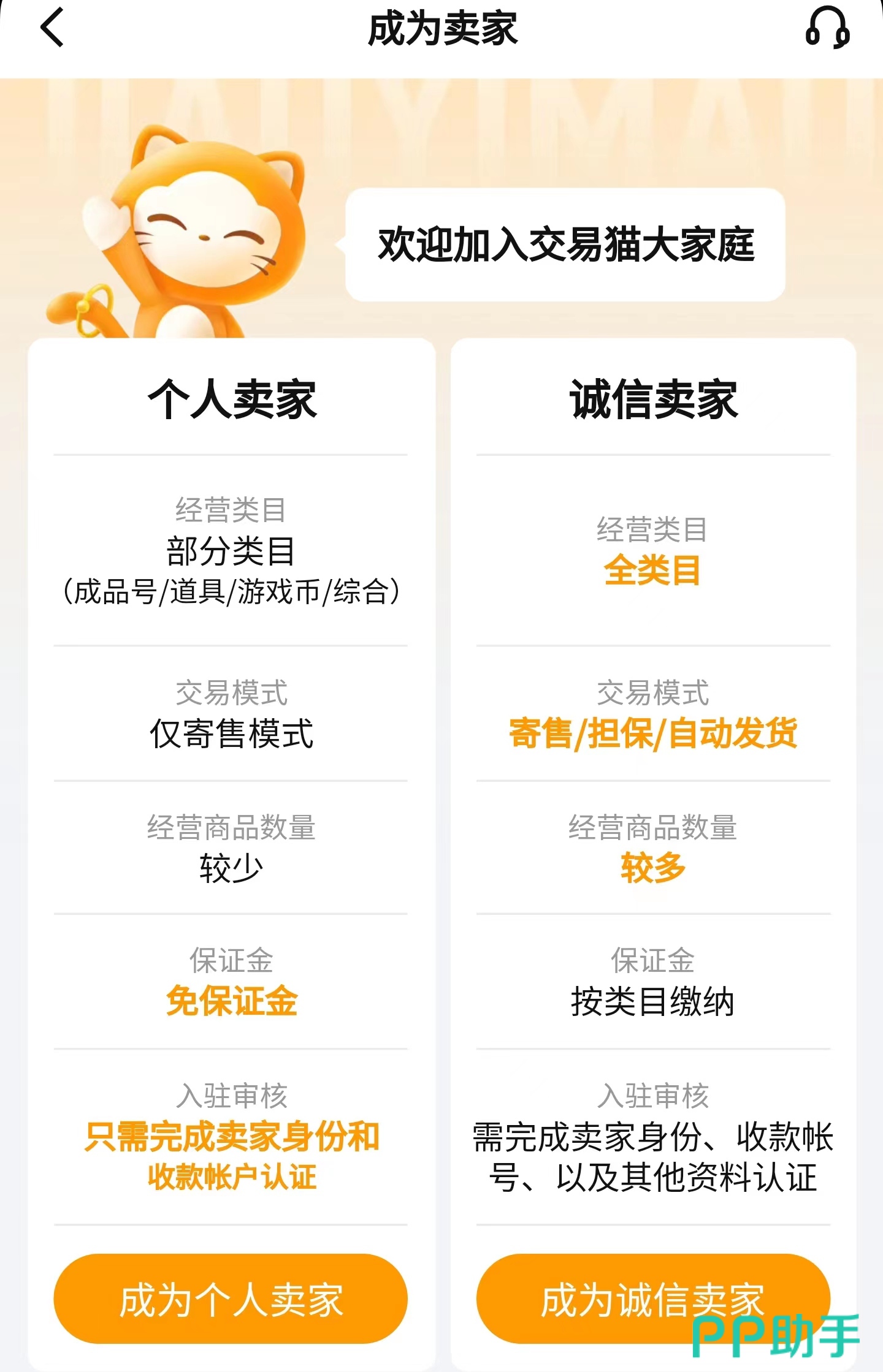 如果是手中有想要出售的掌机小精灵账号的话,在交易猫上大家只需注册成为卖家,就可以在平台挂售账号。当然仅仅只是出售几个游戏账号的话,需成为个人卖家,完成简单的个人身份信息认证和收款方式的绑定即可,不需要缴纳保证金。但是如果想要出售许多游戏账号的话,或者是出售的账号种类多的话,需要注册为诚信卖家,用户要完成更多的身份认证和收款方式的绑定,以及按照账号类目缴纳保证金可以成为诚信卖家。