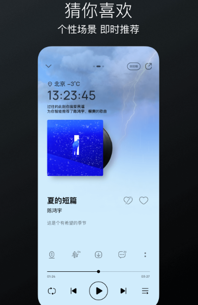 该软件上能够为您提供各种海量正版高品质的音乐,拥有海量无损音乐曲库。无论是心情好的时候喜欢听的畅快歌曲,还是烦躁的时候喜欢听的舒缓音乐一应俱全。