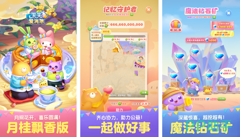 近五千多个关卡,一百多种元素,甚至有多种游戏模式,比如冒险模式、塔防模式、换装模式等。操作时只需要轻轻的滑动手指,将相同的棋子连成一列或者一行,就能够将其消除掉,但消除的时机需要安排好,再灵活的使用道具以及关卡机制,能够让整个消除过程变得更加轻松简单。玩家们还可以和游戏中的果果兔、喵星星一起挑战关卡,利用消除的力量将烦恼全部都清理掉。
