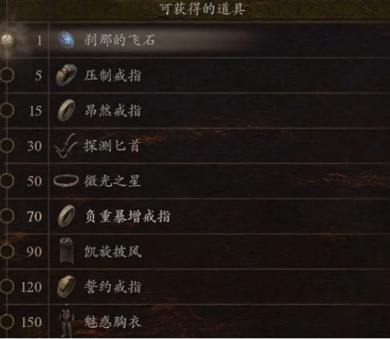 用这个物品还可以用15个探索心之证兑换“昂然戒指”,有了这个戒指之后,就可以给我们增加少许的最大生命值,也可以增加最大体力值和最大装备重量。