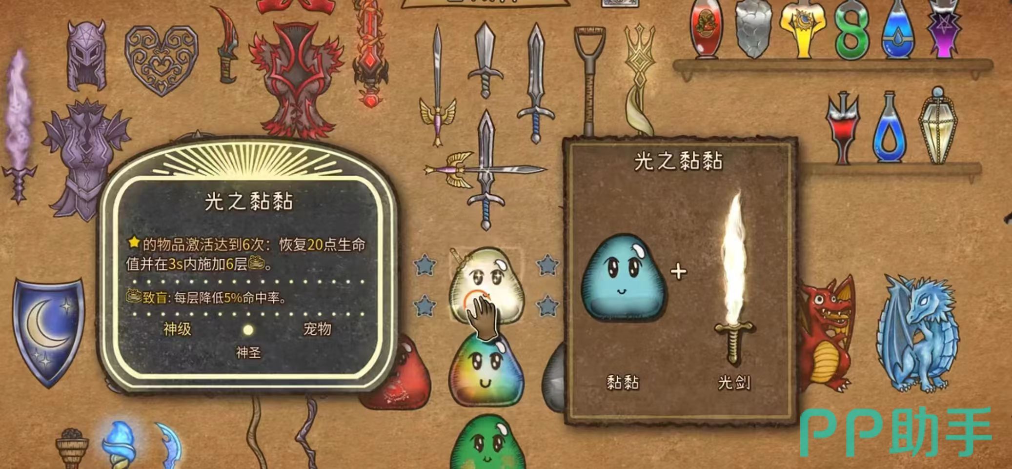强力生命魔药由生命魔药和两个治疗草药合成,这是一个史诗级别的魔药,再恢复生命值、增强防御等方面具有很强的效果。吸魔剑是一种既特殊的、又是传说级别的武器,它是由饥饿之刃与魔法球合成而来,可以增强魔法伤害和角色的吸血能力,在提升角色自身攻击力的同时还会将敌方的魔力转化为自己的能量,在战斗中拥有很强的优势。