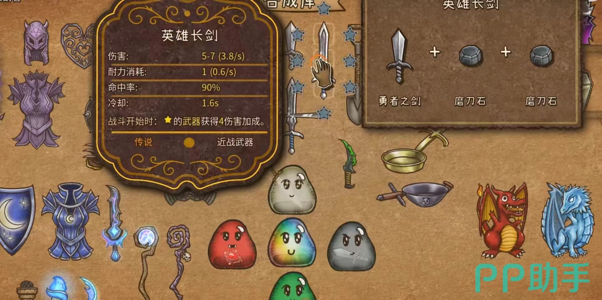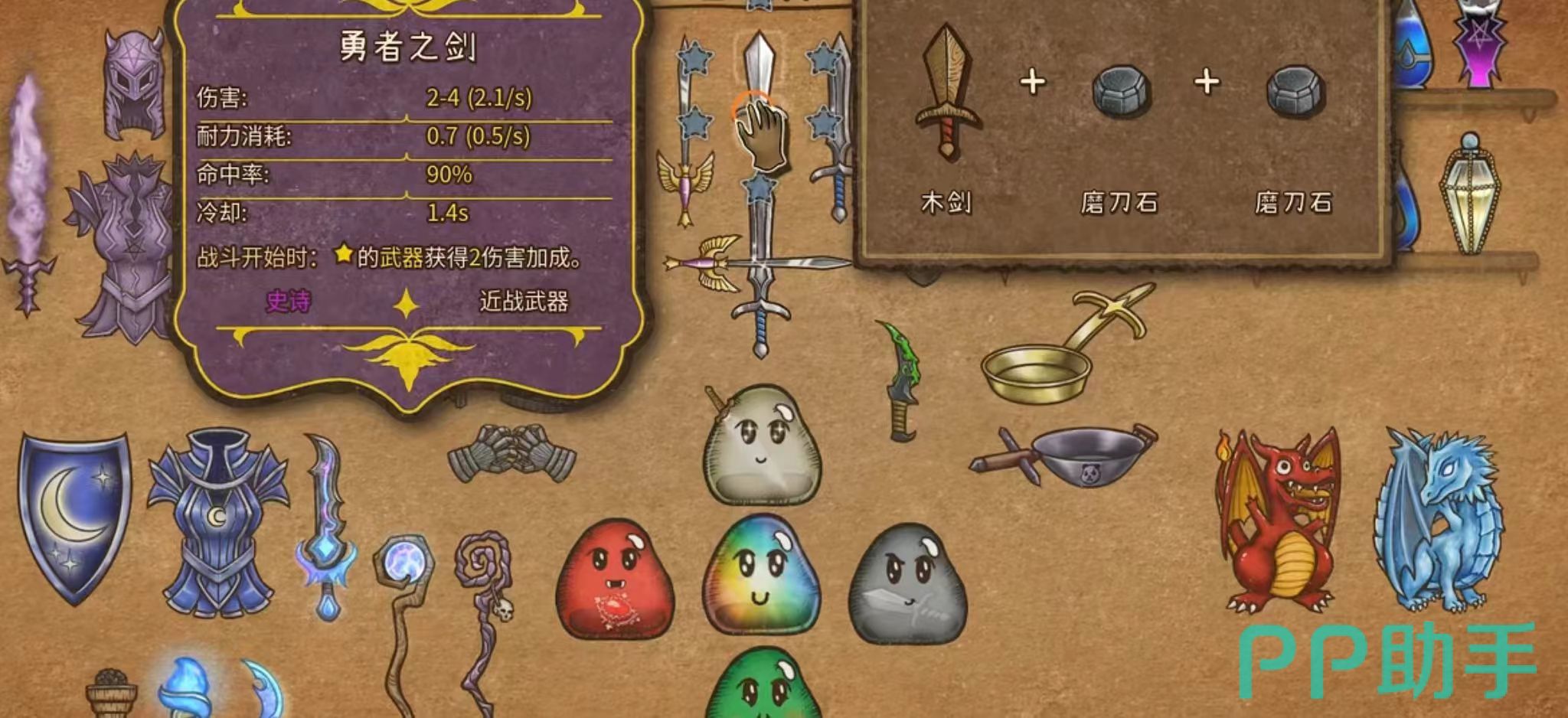 勇者之剑是用一把木剑和两块磨刀石合成的一把武器,这把武器的命中率高达百分之九十,冷却时间为1.4秒,勇者之剑和磨刀石可以合成武器英雄长剑,勇者之剑和迅捷手套可以合成猎鹰战刃,这是更为厉害的武器装备。