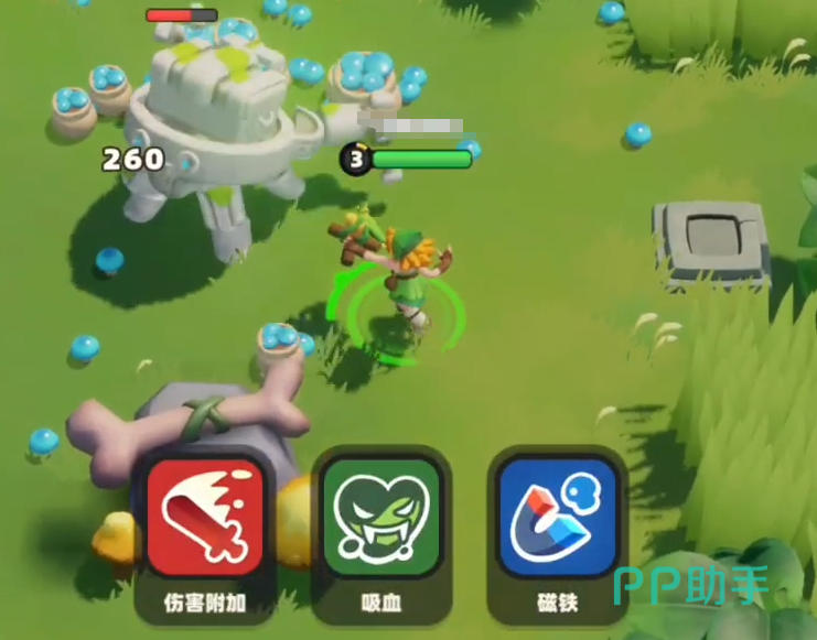 游戏里面在初期我们只可以捡取地上的蘑菇来提升战力。建议这个阶段的玩家们可以携带磁铁这个技能,这样的话可以加快捡蘑菇的速度,让我们在前期就可以快人一步,在地图中如果看到箱子一定要打碎,这样能够获得更多的战力加成。
