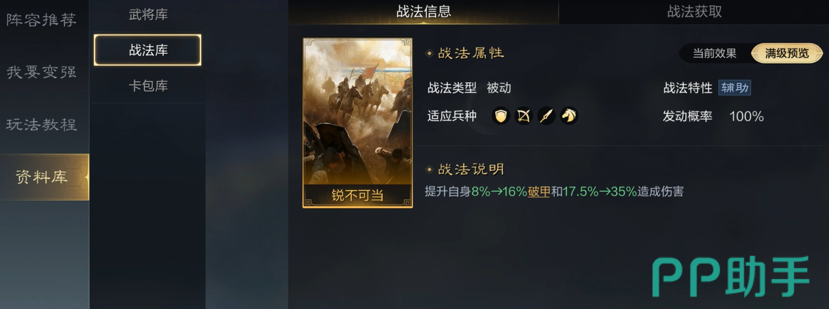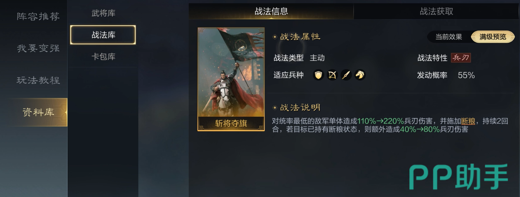 他的技能是水师和王预,水师技可以让关羽有机会在造成伤害前使目标进入洪水状态,如果目标已经是洪水状态的话那么对敌方的伤害将会增加10%,而王预则在他受到谋略伤害后,有一定几率增加自身的主动伤害,大大提供了自己的生存率。