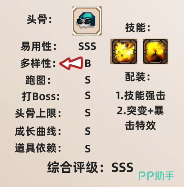 T1级头骨中,骷髅枪兵因其高上限,受到不少操作党玩家们的喜爱,尤其是在装备优良时,其输出能力可与T0级头骨媲美,而且对副骨要求低。而死神则以稳定的强度和快速清理小怪的能力在众多头骨中杀出一条血路,但在面对BOSS时可能会稍显吃力。而炼金术师一高技能释放频率,配合秒杀物品而形成的稳定秒杀流,也成功占据第二梯队头骨之中。