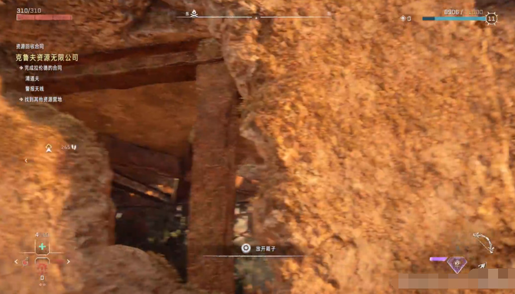 玩家需要找到位于贫瘠之光西南方的遗迹无人地带。在主线任务“大使会议”完成后,玩家将首次进入这一区域。在遗迹中需要寻找一个特殊的点火器道具,这个道具是在后续的主线任务中获得的。也就是说大伙在初次探索时,如果没有点火器可以先不考虑这个遗迹。进入遗迹后,玩家应该从左侧墙壁拉出一个箱子,并将其移动到遗迹的西南角。通过箱子跳上房顶,然后点燃上方平台的焰光孢,进入房间中。在房间内使用投拉器破坏左侧墙壁的一层,然后通过左侧通道来到遗迹北侧,并点燃墙上的焰光孢。