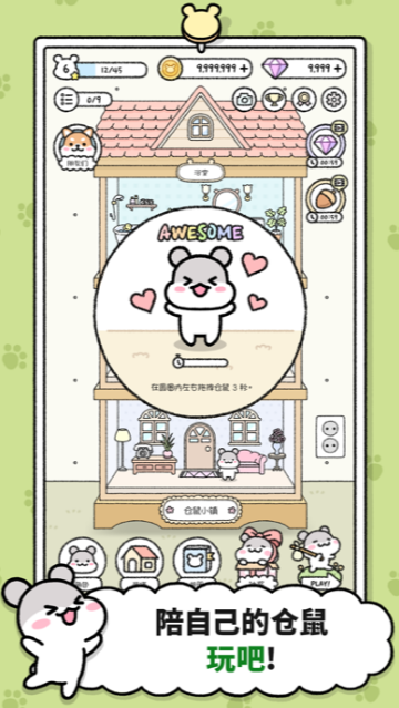 在这个游戏里,玩家可以为仓鼠们建造温馨的小窝,挑选舒适的家具,让它们过上幸福的生活。种种蔬菜、照料可爱的小动物,或者经营各种小店,都能帮玩家赚得满满的收益。在这里玩家的每一个选择都会让你的小镇更加繁华、充满生机。游戏还有很多有趣的任务和挑战等着你去完成,让你成为真正的仓鼠专家。