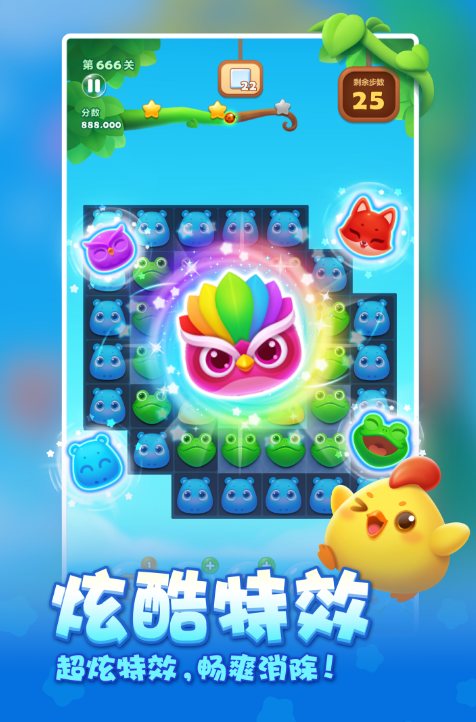 这款游戏中的小动物们萌萌的Q版造型,简直可爱到让人尖叫。每次消除小动物,它们还会发出逗趣的叫声,让人忍不住想再玩一局。游戏里有上千种关卡,上百种挑战方式,越玩越有挑战性,只有真正的游戏高手才能通关。高清的游戏画质,加上每个节日都有特别的活动,真是惊喜连连。在游戏中,只有你想不到的通关方式,没有游戏做不到的。