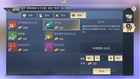 炼化玩法,主要就是提升魔兽品质的方法,通俗点说就是提升魔兽的成长率。品质分为普通、优秀、强悍、霸者、至尊五个品质。提升魔兽的品质需要浣灵液,浣灵液去做任务或者元宝商城和金币商城,银币商城都有卖。