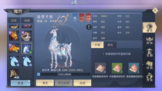首先说一下资质玩法,资质的大小能影响追加属性的大小,在二代魔兽里资质是不可以提升的。在二代魔兽的繁殖完成的一瞬间,资质就固定了。一代魔兽的炼化成长率越高,繁殖诞生的二代魔兽资质也有可能更高。