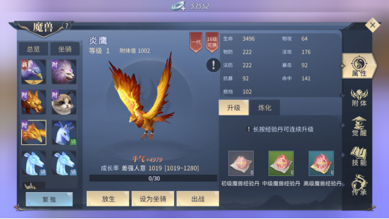 首先,玩家进入游戏完成三级坐骑任务后,就可以开放魔兽玩法,完成任务会免费送给玩家一个萧家白马,也是第一个初级坐骑。这个坐骑没有攻击性质,可以用来代步,增加移速。紧接着继续按照主线剧情任务发展,系统就会赠送另外一个带有攻击性的魔兽,炎鹰。