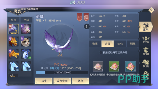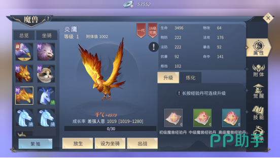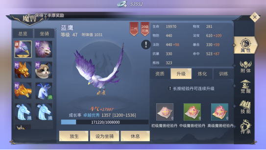 下面小编为大家讲解一下魔兽怎么培养,虽然魔兽的样式多种多样,列如:吞天蟒、紫晶翼狮、独角兽等等,魔兽可以进行升级和炼化的方法进行培养。升级的方法很简单,就是做任务获得魔兽经验丹进行升级。经验丹分为初级,中级,高级三种。等级越高,给魔兽提供的经验就越高。