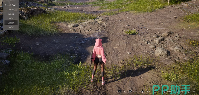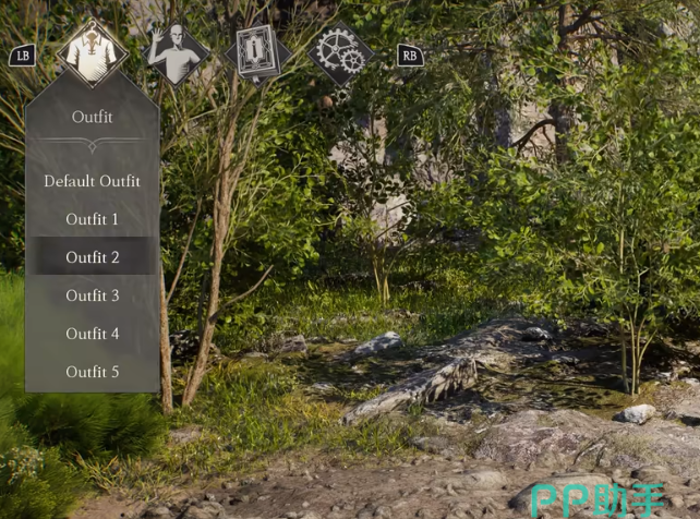本作由于目前是限量试玩状态,所以玩家在游戏里会直接获得所有外观,只需要将你的光标移动到左上方,你可以看到一个衣服的标志,上面写着Outfit,通过点击下拉菜单就可以改变你的时装。