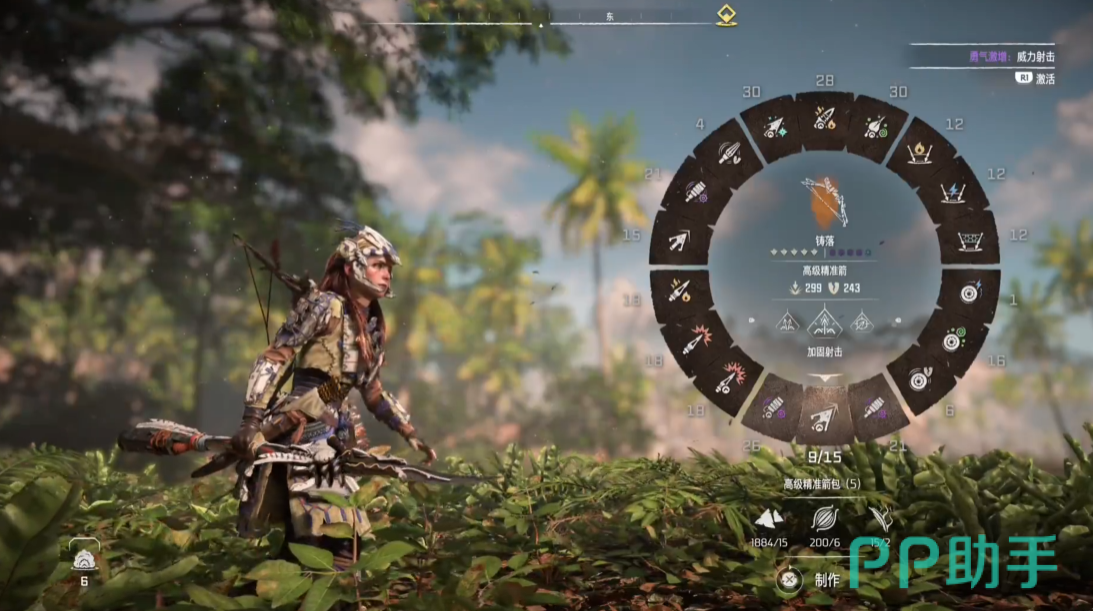我们最开始需要收集制作弓箭所需的材料。在游戏的世界中,山木是制作箭矢的基本材料,可以在树枝丛中找到。收集足够的山木后,玩家需要打开武器选择的轮盘,这可以通过长按L1键的操作找到。而在武器选择盘中,使用右摇杆选择弓箭,然后长按X键即可开始制作。