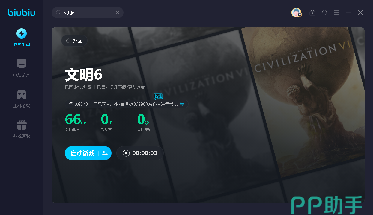 而且不同于其他的加速软件,里面会有大量的广告,biubiu的软件页面非常的干净整洁,玩家可直接在biubiu首页搜索文明6,找到对应的游戏,一键开启加速。详情界面还可看到当前的加速状态,能够直观的感受到biubiu带给我们的加速魅力,先加速再进入游戏,大家不但能感觉到人物画面更精致了,角色战斗也会更加流畅,同时玩家们如果想要联机体验也不用担心,biubiu会全程为我们保驾护航,有效的避免了网络掉线的情况发生。