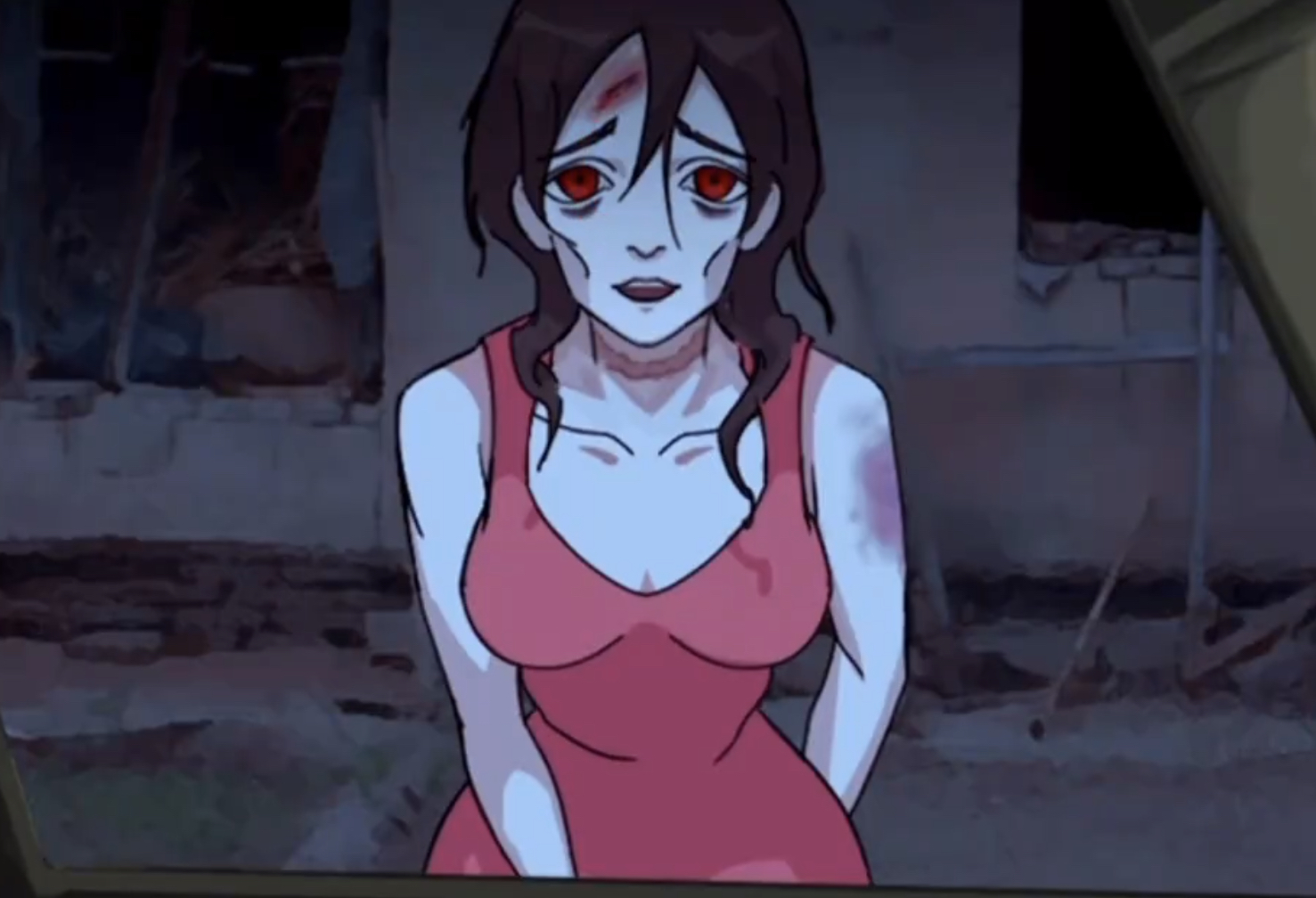 碰到第2个女人,他的脸颊凹陷,脖子上有非常恐怖的印子,手臂上还有淤青,眼睛也是非常恐怖的红色,且他的手背在后面,不知道是在隐藏什么,所以不同意他上车。