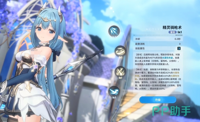 游戏内的女主角是一位有着蓝色长发的精灵族少女,她的名字叫做夏儿,很容易让人联想到一些异世界小说中的精灵美人,使用的武器是一把骑士长枪,长枪的穿透力和元素伤害能力都非常不错,能够让玩家体验到多元化的战斗体验。
