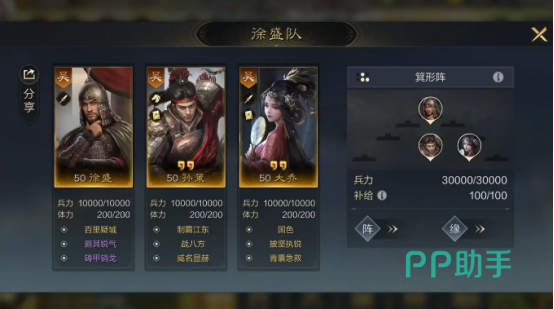 另一种阵容推荐就是徐盛加上孙策以及大乔,如果是这样的组合,徐盛可携带避其锐气加铸甲销戈这两种战法,也可准备好坚壁清野。相对于第一种组合来说,主要就是将陈武换成了大乔,这种组合大乔主要提高的是治疗以及增伤的功能,而徐盛提供的是减伤和抵御功能,孙策属于单核输出。