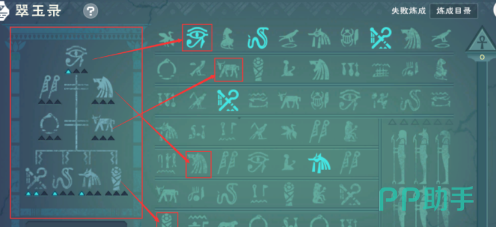 翠玉录上雕刻的内容与九柱神相关,这九位神祇分别代表着冥界、生育、沙漠、丧葬等不同的力量。在游戏中,这九神的力量被具象化为九种不同的律,它们各自独立,但又相互关联,构成了一个复杂而深奥的炼金体系。律是翠玉录上的核心元素,它们是一种特殊的符文,代表着不同的炼金法则。玩家需要通过不断尝试和实践,来解锁这些律的秘密。每一个律都有其独特的效果,它们可以单独使用,也可以组合使用,创造出更加强大的炼金效果。