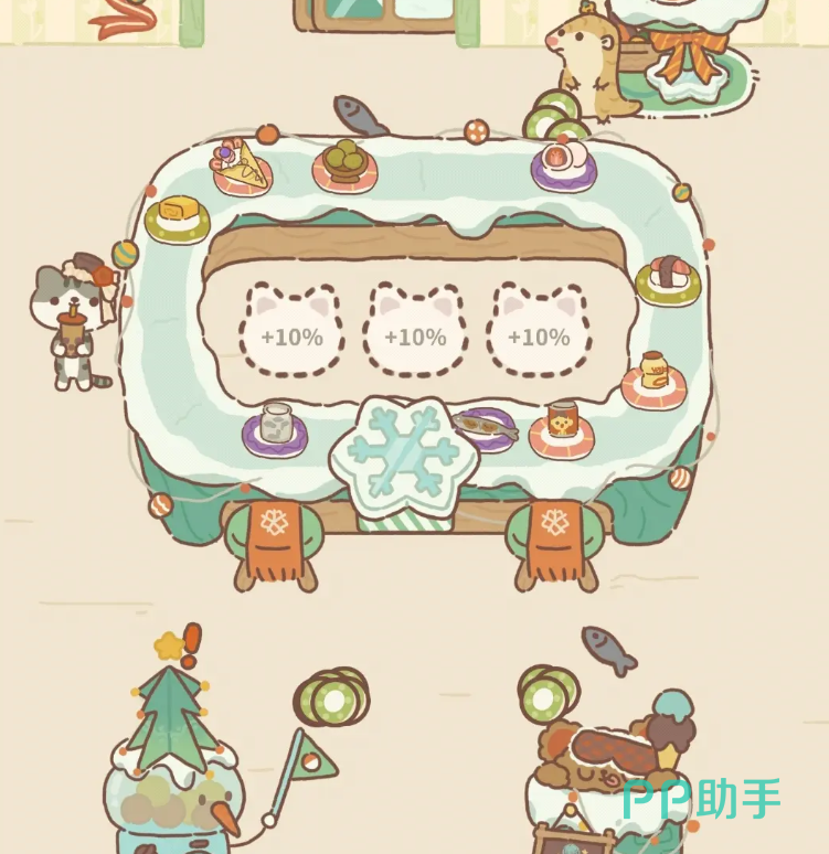 而在这些【特殊设施】中,有一些是一定要买的物品,例如广告招租牌。广告招租牌的具体作用是帮助玩家们提高鱼塘招募摊主的成功几率。在【纪念物】中有很多是可以给餐厅员工佩戴的,佩戴后不仅能够装饰外貌,还能够提升评分。除此之外,玩家们可以通过购买招牌商店中的【壁纸】和【纪念物】进行餐厅主题的自由搭配,例如圣诞节的冬日圣诞风,或者夏日的清新泳池风格。总之铃铛代币能够买到的道具玩法多多,非常值得玩家们购买。