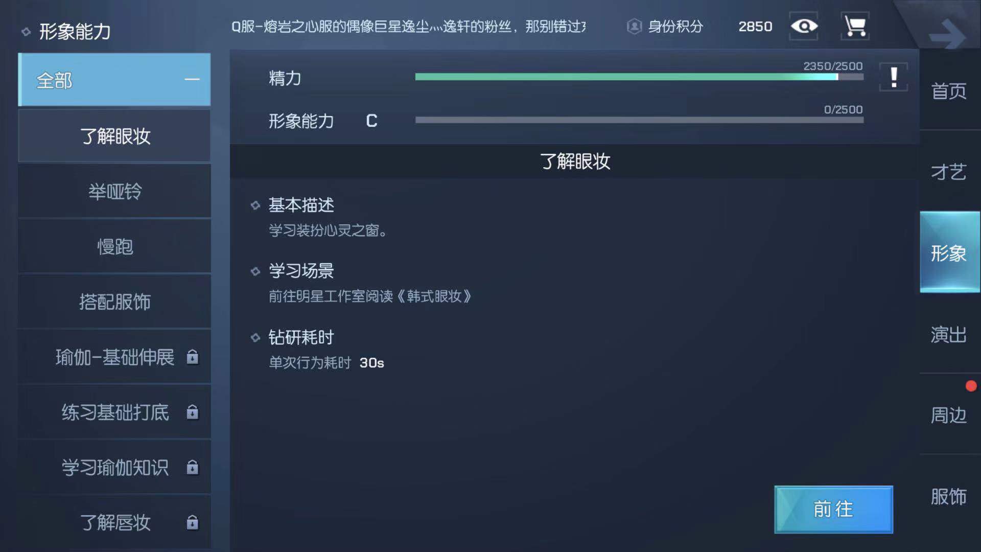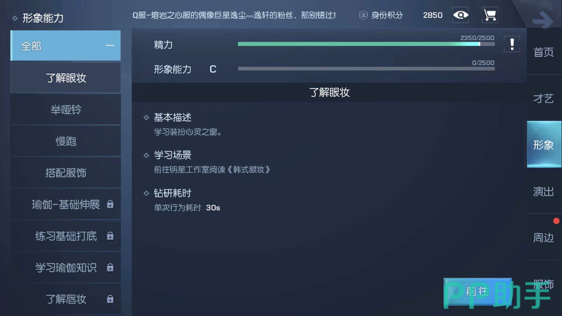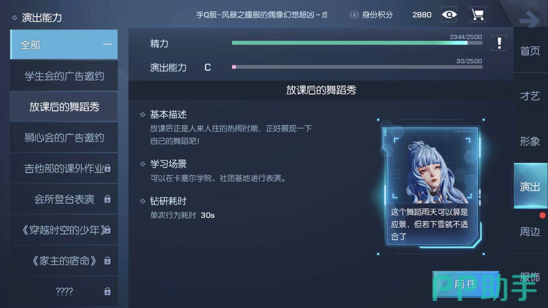其中有一些上锁或者打问号的项目就是因为偶像身份等级不够所以无法学习。另外偶像的学习也是讲究环境的,在早上的时候适合锻炼绕口令,在下雨的时候锻炼舞蹈秀,只要选对了时间和天气进行相应的训练可以事半功倍。