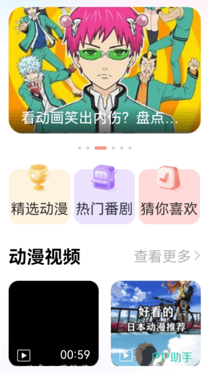 在《樱花动漫》中有很多口碑好的动漫,还有各种类型的,例如热血动漫、搞笑动漫等等。大家在平台的主页推荐中可以看到很多经典动漫,例如日本的治愈系动漫、冒险探索动漫等。平台还可以根据动漫图片猜名字,小游戏还能扩充动漫圈。