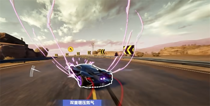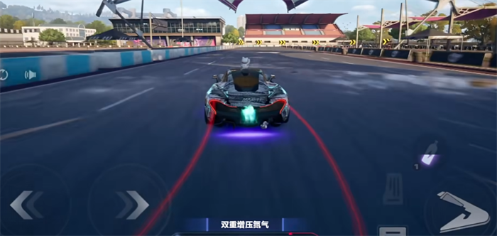 同时还有增压氮气的运用,而这个和漂移动作是密切相关的,在玩家赛车漂移的过程中,应该轻触刹车,然后迅速按下氮气键和油门键,如此就能在结束漂移动作时第一时间实现强力的加速,在过弯的时候往往会有不错的效果。