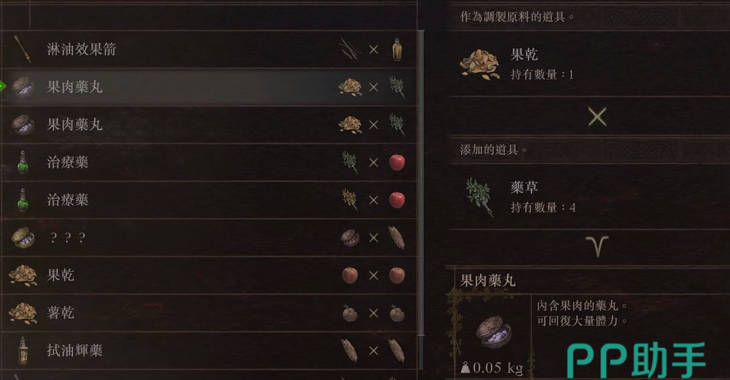 还有个快捷方式,就是在配方那里找到想要合成的物品,右侧就会显示合成结果,这样就可以根据看到的内容,选择自己要做什么。一般情况下都是由水果以及药草进行调配,原材料在野外就可以采集,做成药剂之后能够在战斗中为玩家补充体力以及血量。龙之信条2物品合成方法告诉各位了,大家快去试试吧。