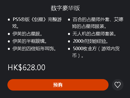 豪华版需要628港币,虽然这款游戏没有剧情DLC,但是豪华版会送你占星题材的服装和一套配饰。此外你的队友百合与跟班机器无人机也有该主题的外观,另外还有2000技能经验和5000无人机货币。