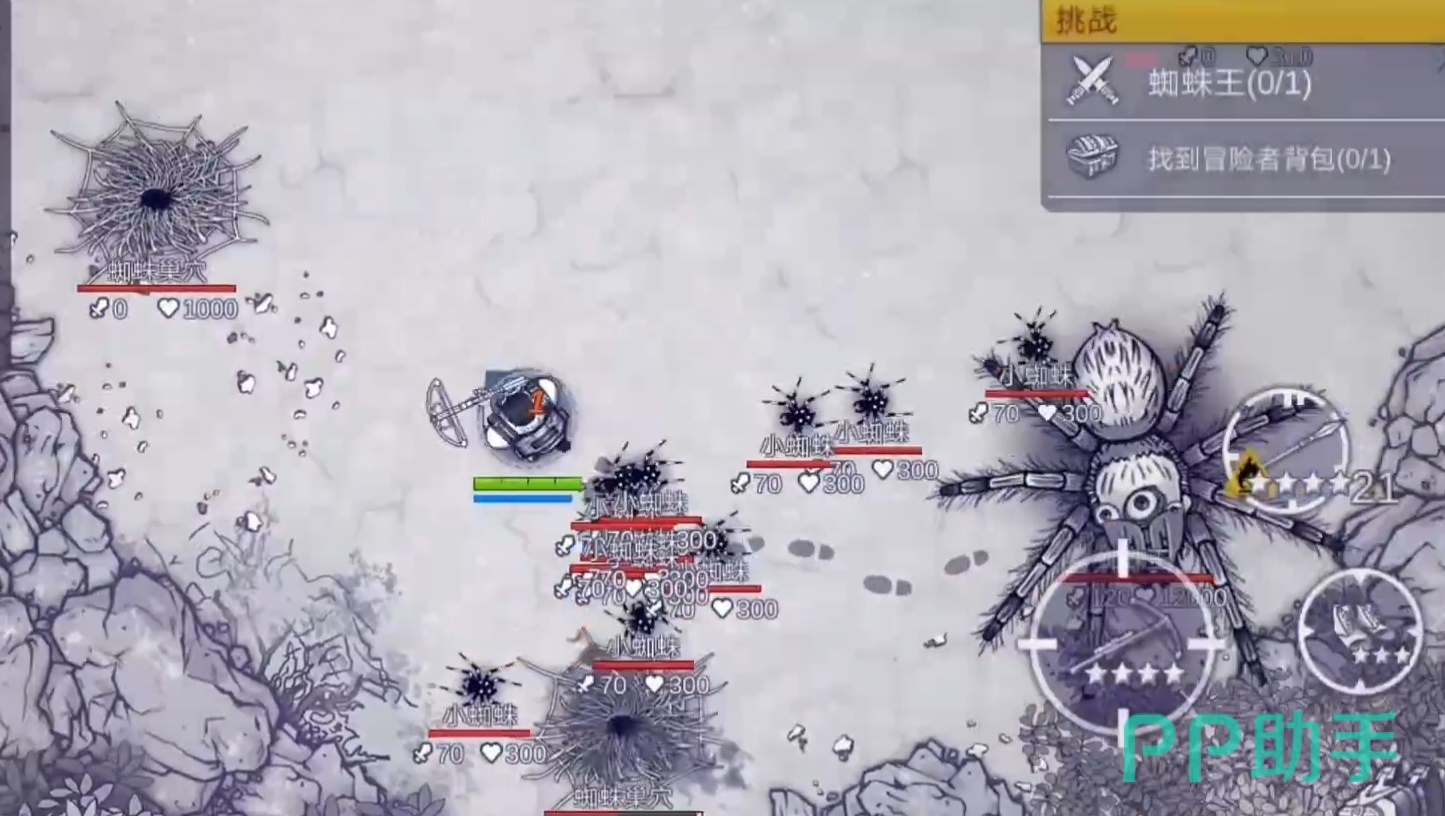 先来到矿区入口,这附近有很多变异生物、感染者在游荡,所以大家要特别小心。不必与怪物纠缠,直接进入矿区找到矿洞,蜘蛛王体型巨大非常显眼,很容易就能看见。矿洞内除了蜘蛛王外,还有许多小蜘蛛,虽然攻击力不强但数量多,还是挺烦人的。