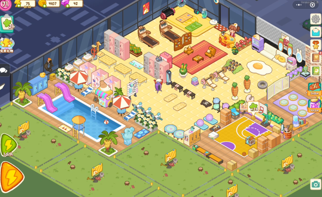 野餐篮虽然后续可以合成更加高级的箱子,但是在前期还是野餐篮更具有性价比,大概维持4到5个左右的数量就可以了,这样能稳定产出大量的食物,给健身房提供不少的收入,而且还能制作全新的菜谱,提升餐饮区的口感。
