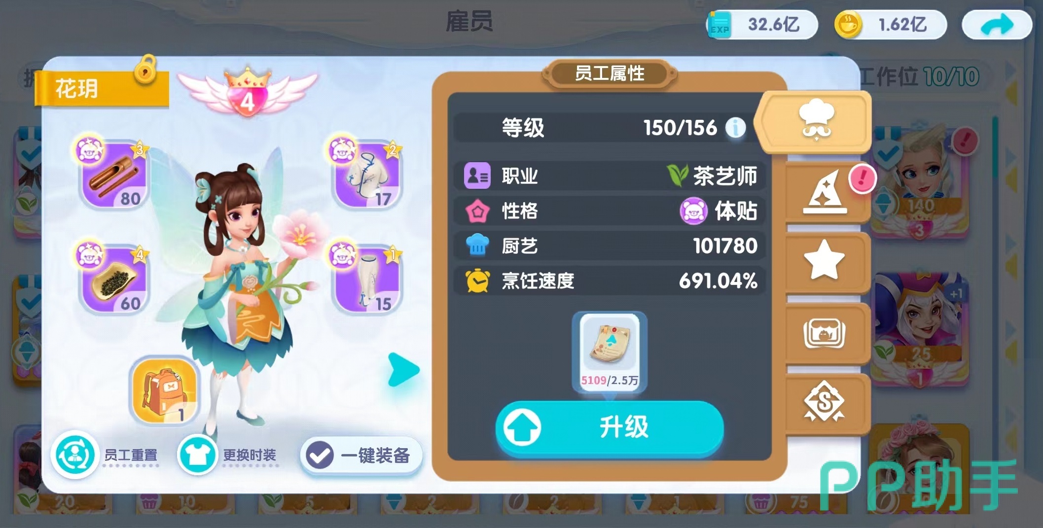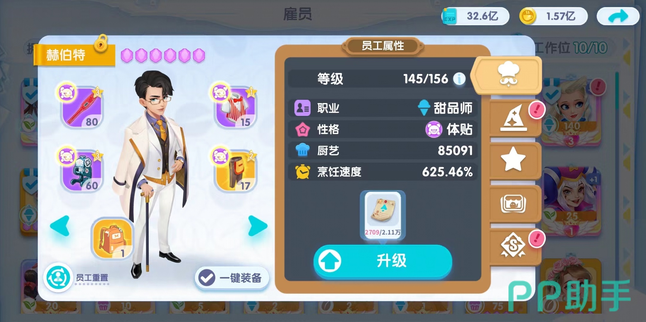 这里面的员工有不同的性格和职业,包括热情,体贴,自信,不同性格员工要合理搭配和选择起来,在职业方面也包括咖啡师,糕点师,甜品师等,需要按照自己的经营需要进行选择。在刚刚开始阶段,大家首先要做的就是招募员工,然后才是钻研赚取金币以及提高食谱,接下来要进行的就是员工升级。关于店铺扩建方面,尽量先开7个位置,因为前期阶段并没有太多的员工可以应用,有资源以后再慢慢扩建。后期小店中员工以10人搭配为最佳配置,这样既可以实现提高效率,又能够降低经营成本,在员工选择方面自然是金色为最佳选择,这是里面属性最好的员工。