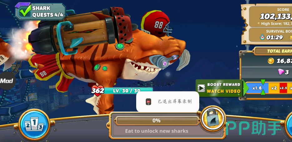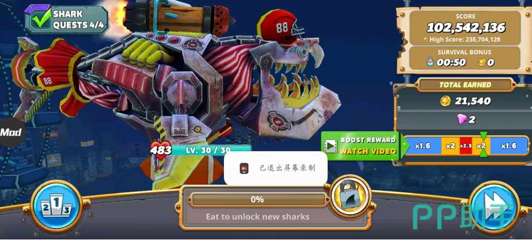 原子鲨鱼,以其独特的辐射技能而在游戏中有着不可动摇的位置,而且作为最新版本的顶级鲨鱼,表现非常亮眼。它能够释放辐射波,摧毁一切障碍物,并且在吸收化学废料时自我修复。原子鲨鱼的解锁价格为1500个钻石。